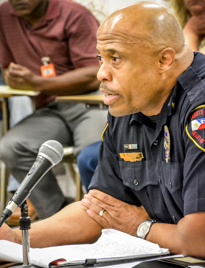 “We’ve really made such progress under the interim chief with community relations,” says Boudreaux, referring to Thomas’ efforts to get a conversation going between the department and Lafayette’s minority communities, including the councilman’s District 4, which encompasses big parts of Lafayette’s Northside.