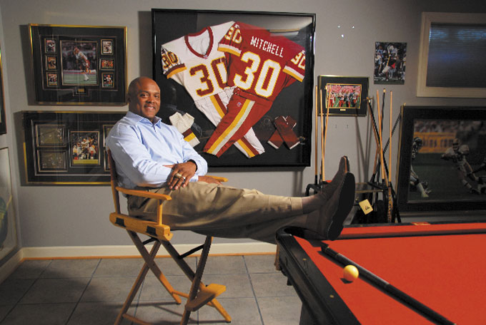 Unlike many retired professional football players, Mitchell, now 48, has no lingering health effects from a very violent sport. He says he suffered one concussion in his pro career and, amazingly, never tore a knee ligament in 20 years of playing — from 8th grade all the way through the pros. He jokes that the only knee injury he sustained was when he stepped funny off a golf cart a few years ago.