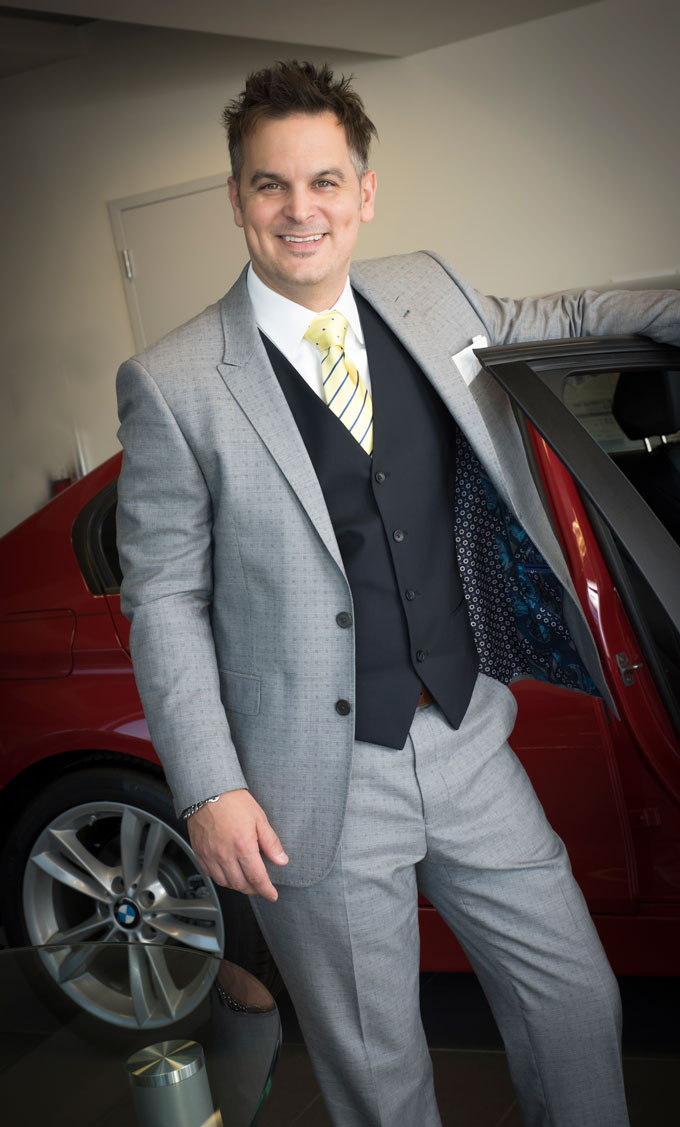 You can find him shopping for his casual wardrobe at Maven Menswear. It’s the only place he buys casual clothes locally. His favorite suit designer is Ted Baker, but he does buy everyday suits from Suit Supply.