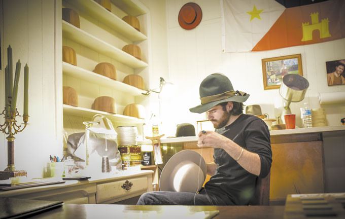 “There’s a different spirit here not only from the rest of the country and the rest of the South but the rest of the state,” he says. “I sew by hand and use the same tools they used in the 1800s — handmade on the bayou. I’m diehard Cajun blood through and through, and it’s incorporated into everything. How to put our culture into this … cypress wood and Spanish moss and aging and distressing so the hats have character of their own,” he adds. “It may look like you ran through sugar cane fields all night.”