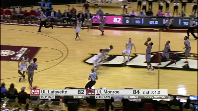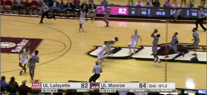 The Ragin’ Cajun basketball team got a much-needed Sun Belt Conference win — over in-state rival Louisiana-Monroe, no less — thanks to a combination of heroics and luck from Cajun guard Johnathan Stove, who sank a half-court buzzer beater to give UL an 84-82 win Saturday night in Monroe.