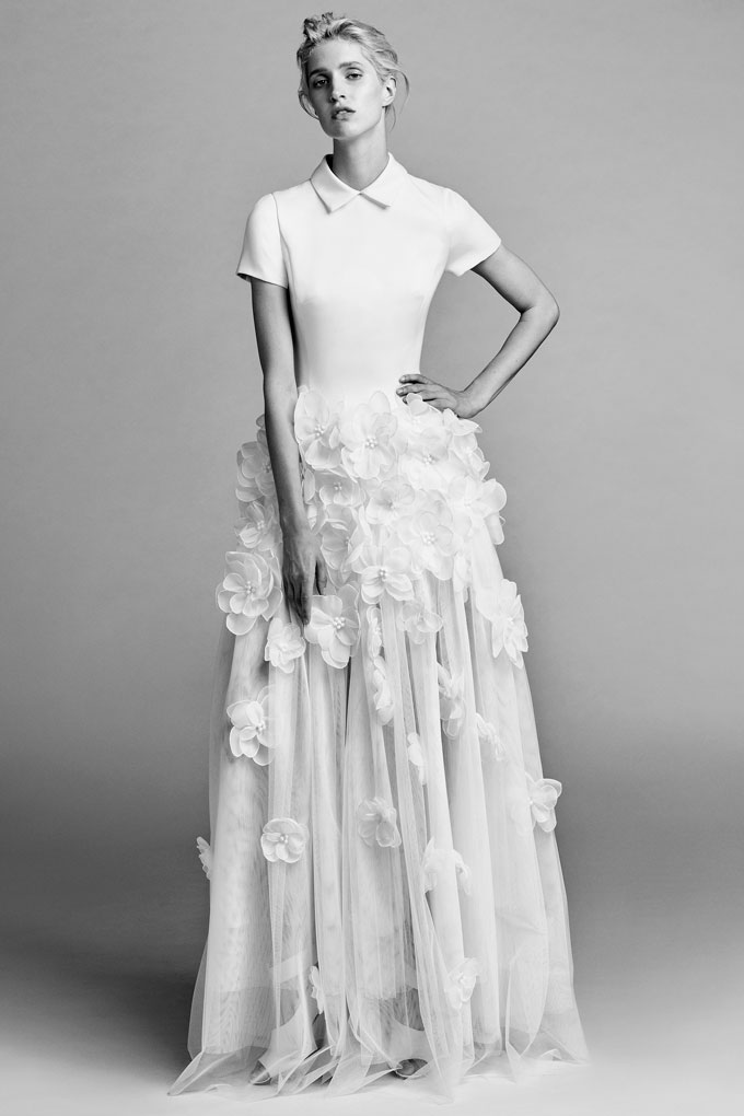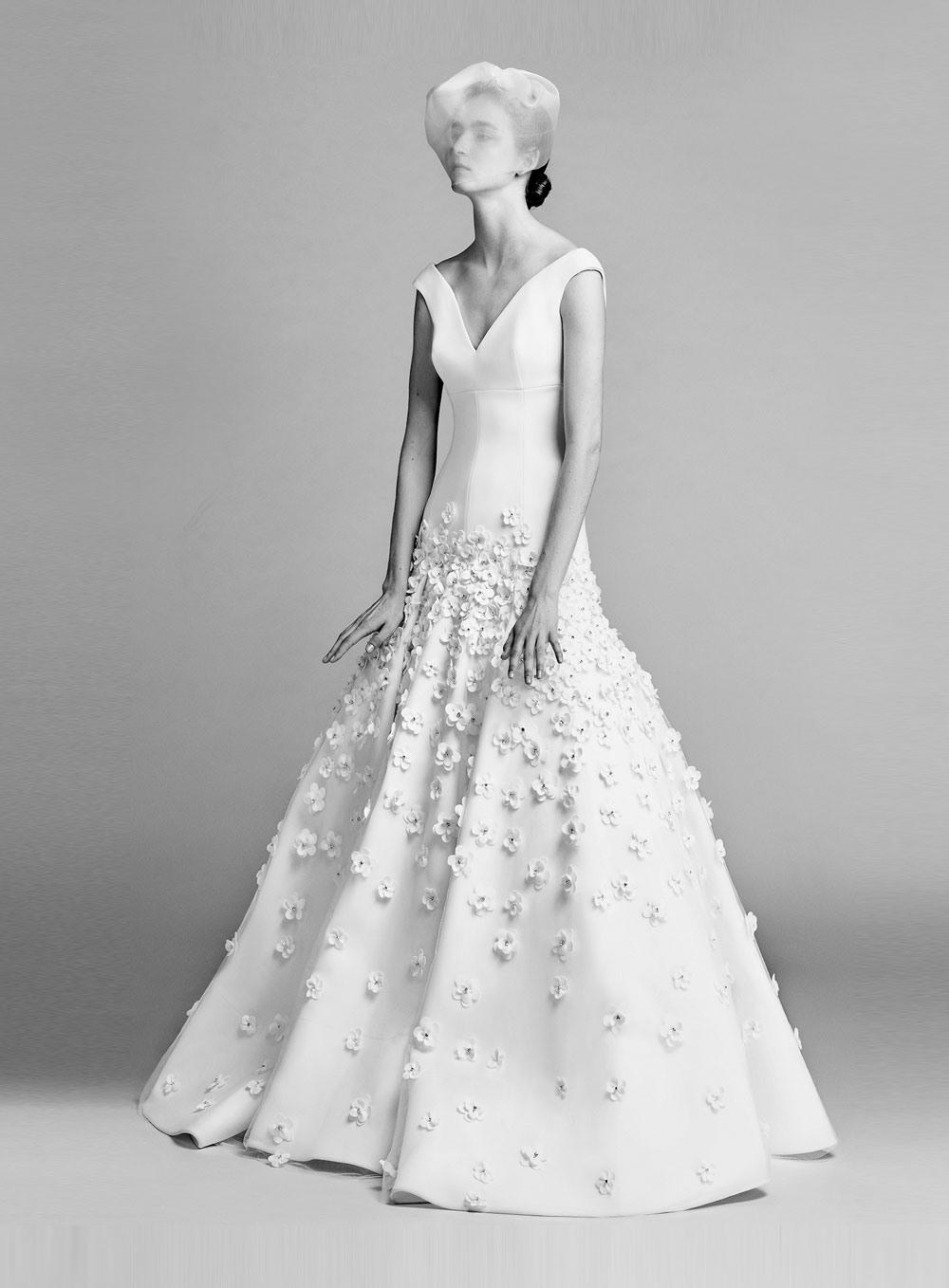 For those brides wanting to show a bit more skin, off-theshoulder and cut shoulder gowns are going to be easy to find this year. Plunging necklines—in front and back—and high-necked styles have also been spotted on the runway.