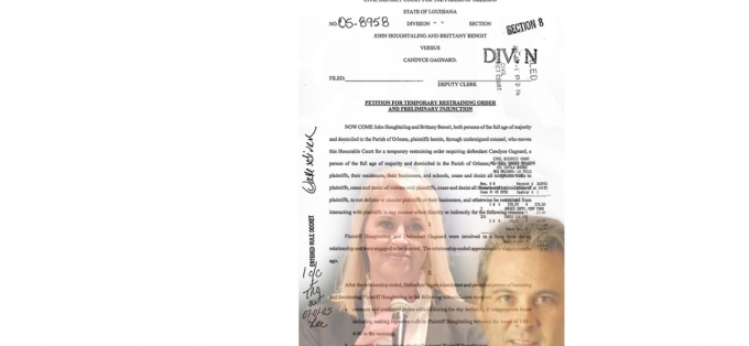 The suit sought and received “a temporary restraining order requiring defendant Candyce Gagnard ... domiciled in the Parish of Orleans, to stay away from plaintiffs, their residences, their businesses, and schools, cease and desist all threatening and intimidation of plaintiffs, to not defame or slander plaintiffs or their businesses, and otherwise be restrained from interacting with plaintiffs in any manner either directly or indirectly” for reasons the petition goes on to list.