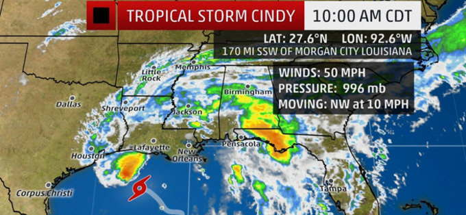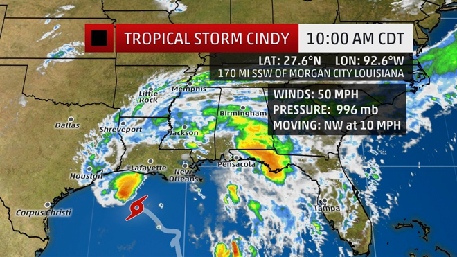 Cindy is expected to move northwestward and approach the coasts of southwest Louisiana and southeast Texas late Wednesday into Wednesday night, before moving inland near the Texas/Louisiana border Thursday.